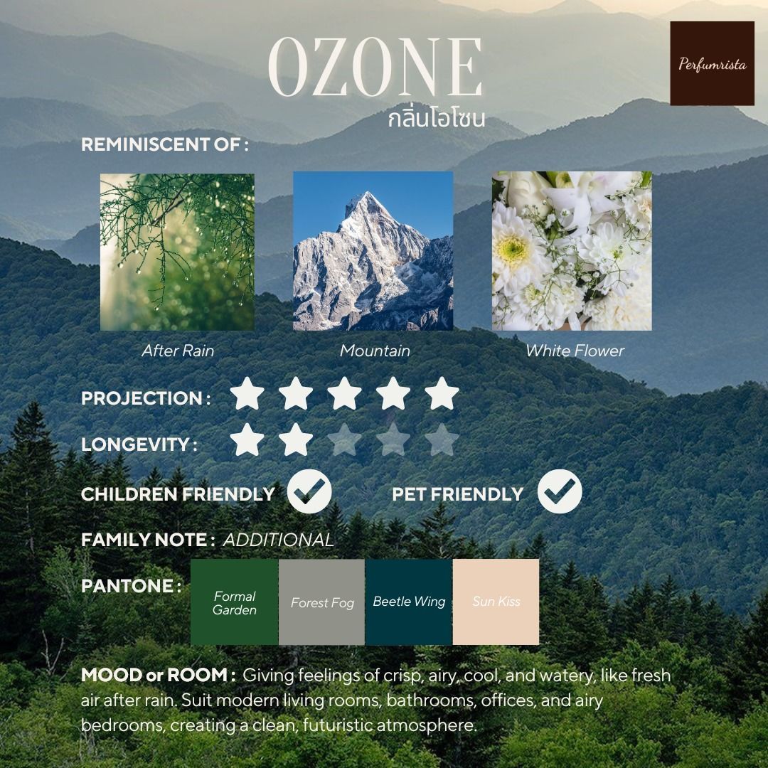 กลิ่นโอโซน (Ozone) กลิ่นที่ให้ความรู้สึกสดชื่น ปลอดโปร่ง เย็นสบาย และชุ่มชื้น เหมือนอากาศบริสุทธิ์หลังฝนตก